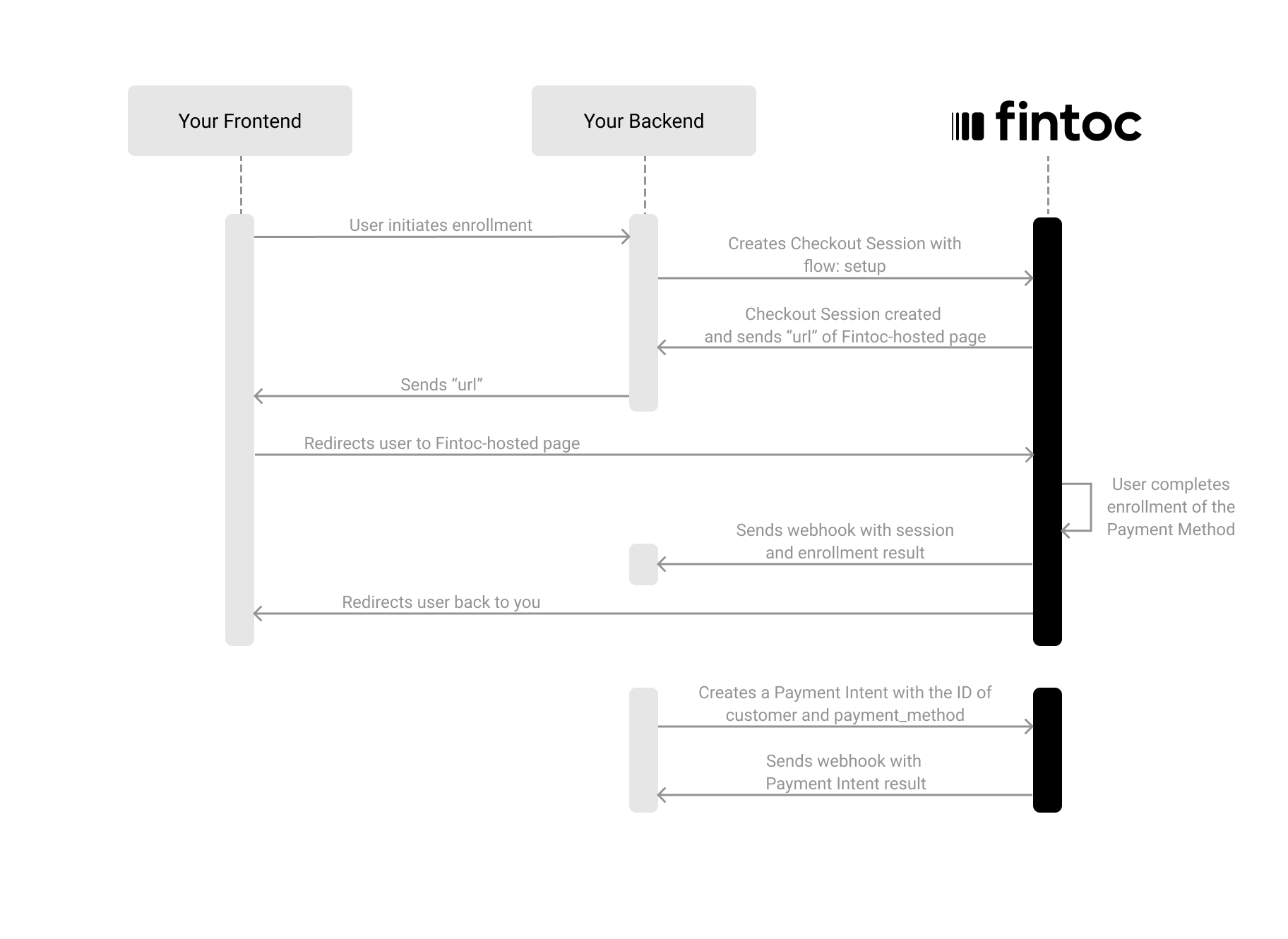 Checkout Sessionwithflow: setup - Redirect your user to complete the enrollment at the Fintoc-hosted checkout page